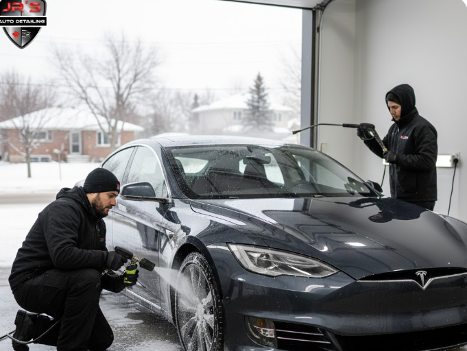 Snow and slush tracked inside can damage carpets and create odors. Interior cleaning and mat protection are key components of complete car detailing Edmonton winter services.